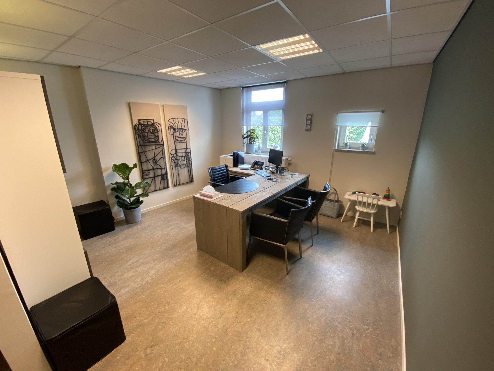 De praktijk beschikt over een eigen toegangsweg en ruim voldoende parkeergelegenheid. In het multi-functionele pand zijn verder nog fysiotherapeuten, een logopediste en een psycholoog werkzaam.